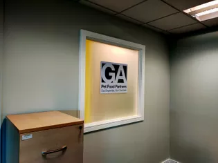 One of the key features of the project was the installation of Branded Wall Coverings, which served as a backdrop for the space. These custom-designed wall coverings incorporated GA Pets Foods' branding and imagery, creating a cohesive and visually captivating environment. On top of the wall coverings, Flat-Cut Letters were installed to add a dimensional aspect to the branding and provide a polished and professional touch.