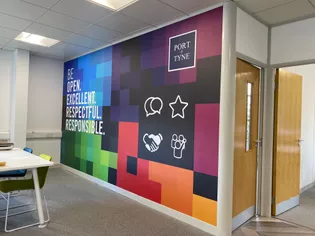 We were asked to design and install wall and window brandings at the Port of Tyne for theory Innovation Hub, and marketing offices. A site survey was conducted to take full and accurate measurements before being handed over to one of our in house designers.